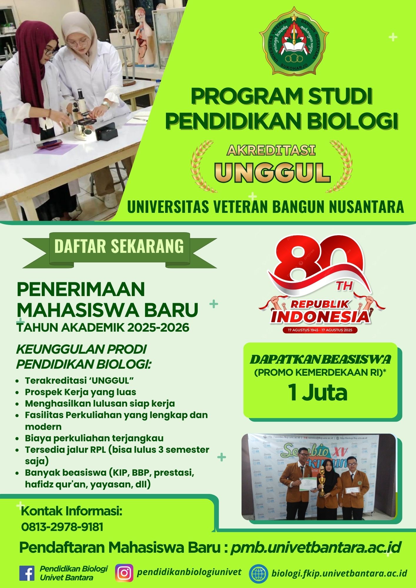 Segera daftar mahasiswa baru di program studi pendidikan biologi univet bantara.